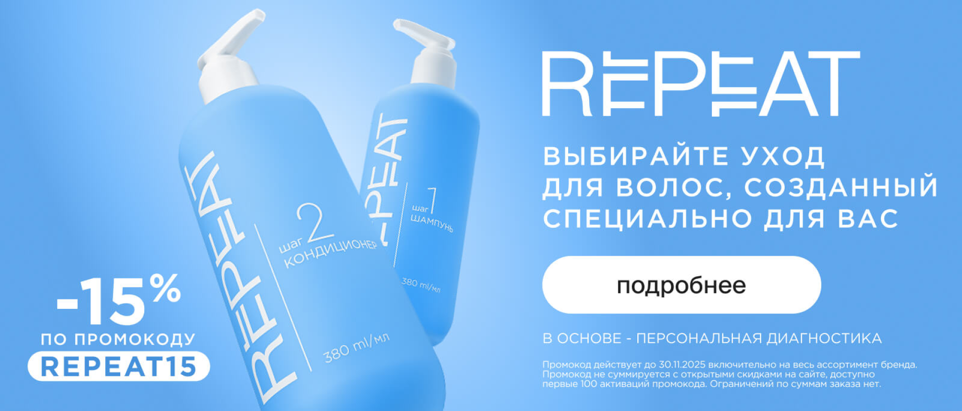 Чтобы узнать больше о состоянии волос и кожи головы в любом возрасте, можно воспользоваться сервисом онлайн-диагностики Repeat. В результате вы получите рекомендации по уходу, а также сможете заказать персонализированные продукты, формулы которых создаются с учетом всех индивидуальных особенностей.
